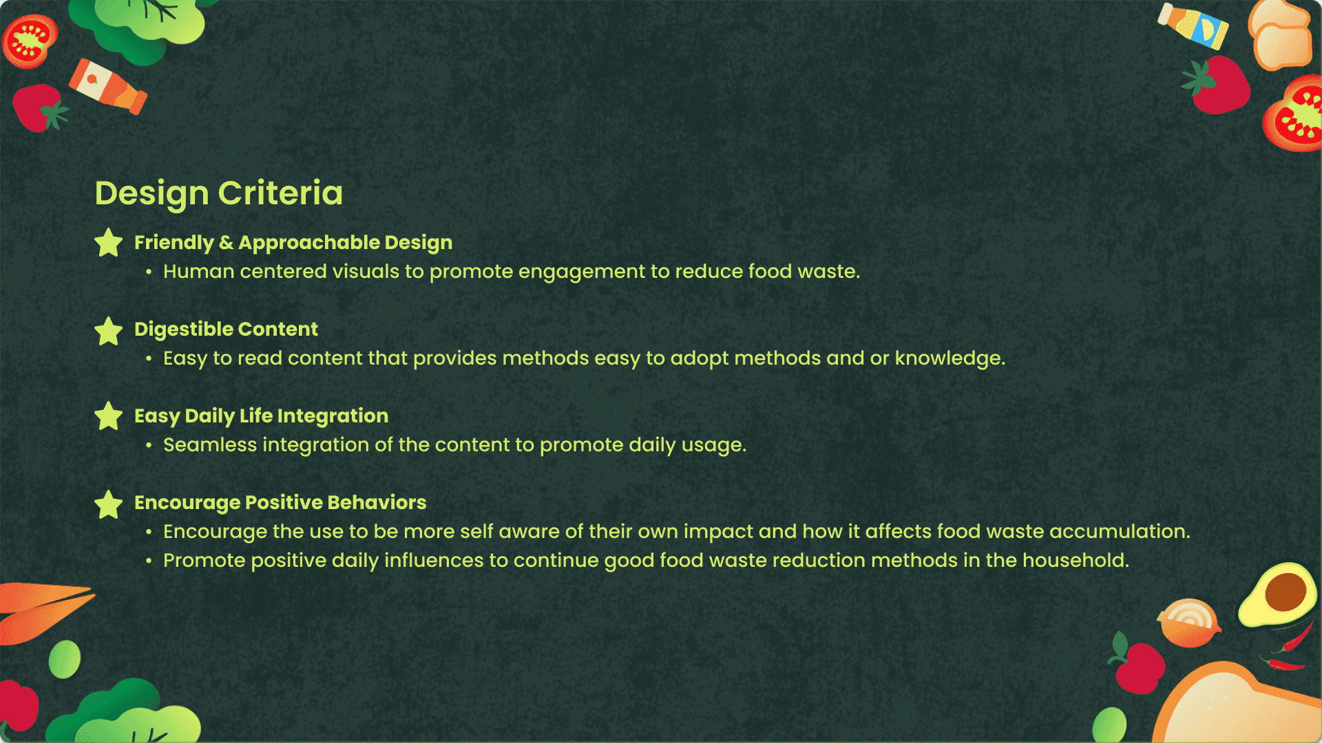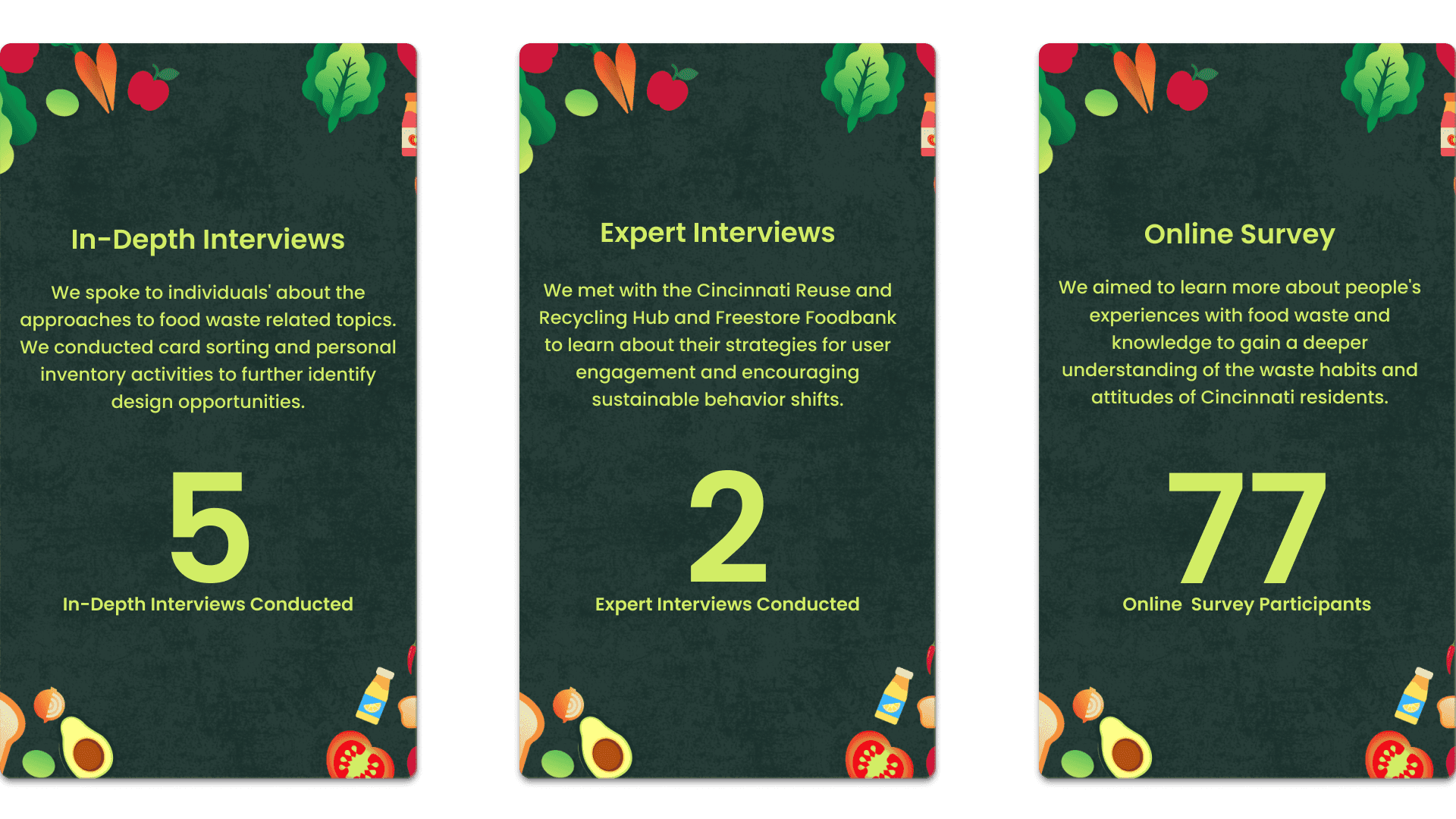 In Fall 2024, a collaborative design research studio project was tasked to me and my project partner. We began this semester with researching problem spaces all over the world, looking for possible design solutions for them. Me and my partner both found a similar problem space in food waste with general consumers. We discovered that besides the typical American wasting tons of food each year we found that there aren't a whole lot of sustainable ideas to have less waste, more taste. Thus began our research project to understand the problem, and design a reliable solution using design research methods.